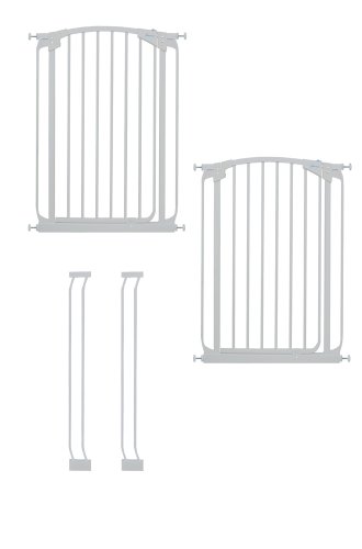 This Dreambaby Value pack comes with two extra tall 39.4″ Dreambaby gates and two 3.5″ extensions. The gates will fit an opening of 28″ 32″ without extensions. Additional extensions are available to purchase separately. Each gate is pressure mounts, but comes with mounting cups for optional use. The door opens in both directions and closes automatically. The colors available are white and black.